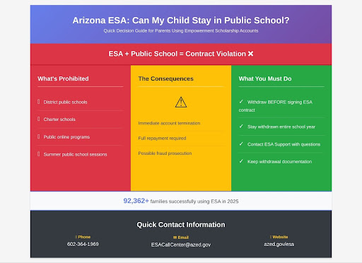 Arizona distributes education funding once per student. When a child receives ESA funds while enrolled in public school, the state essentially pays twice for the same student’s education. This isn’t a gray area. It’s considered a violation of the ESA contract.
