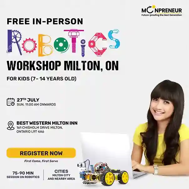Looking for what to do in Milton, ON this weekend? Don’t miss Moonpreneur’s free Robotics/Math Workshop – a perfect weekend activity for kids to explore STEM through fun, hands-on learning. Join us for an engaging and educational experience that sparks creativity and innovation in young minds. Reserve your spot today!