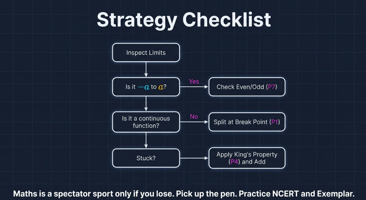 Pro-Tip for JEE/SAT: Spotting an odd function can save you five minutes of unnecessary work—you can just write “0” and move on.