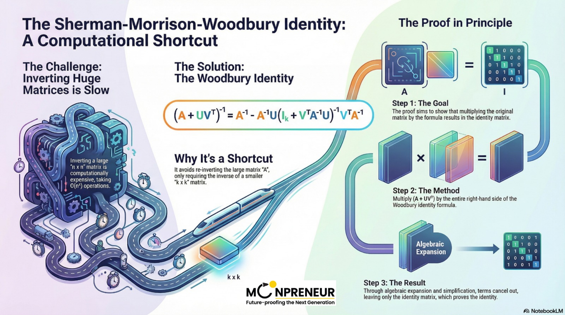 Whether you are tackling an SAT algebra problem or designing an AI, always look for the “Sherman Morrison Woodbury Identity”—the logical link that lets you use what you already know to solve something new.