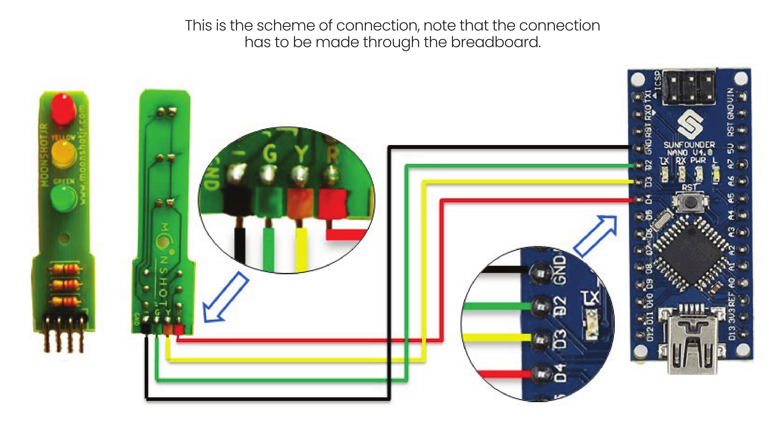 Insert your Arduino Nano and Traffic Light Pole into the breadboard.